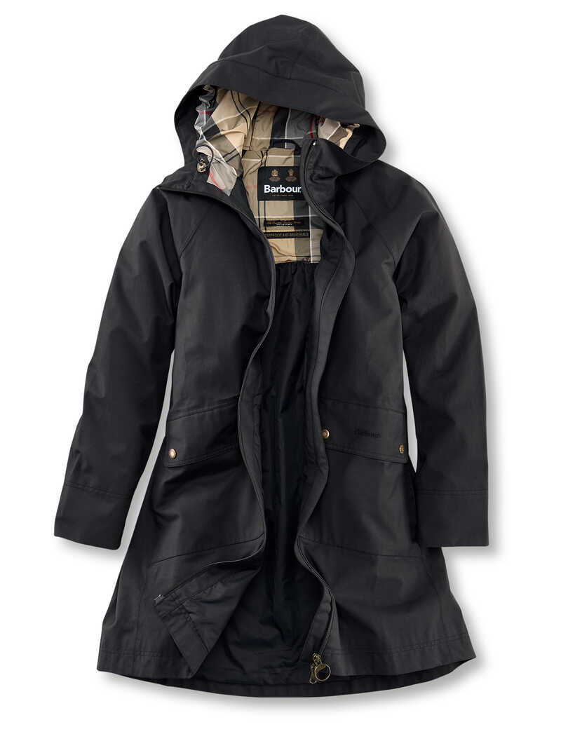 Mit diesem leichten Regenparka sind Sie den Wetterlaunen des Frühlings immer einen Schritt voraus! Der Outdoor-Experte Barbour hat diese Jacke mit einem atmungsaktiven und wasserdichtem Gewebe versehen. Die feste Kapuze lässt sich per Kordelstopper festziehen und der Zweiwege-Zipper hoch schließen, so dass beides wunderbar Regen und Wind abhält. Zwei schräge, geräumige Pattentaschen, ein abgerundeter, etwas längerer Saum im Rückteil und eine Kräuselung an der Rückenpasse vervollkommnen das Design. Innen sind die Kapuze und die Passe im charakteristischen Tartangewebe gefüttert. Mit Raglanärmeln, Barbour-Branding auf einer Tasche und einer Innentasche. Ausgestellte Passform (Regular Fit). Länge ca. 93 cm. Farbe: Navy. Original Barbour.
