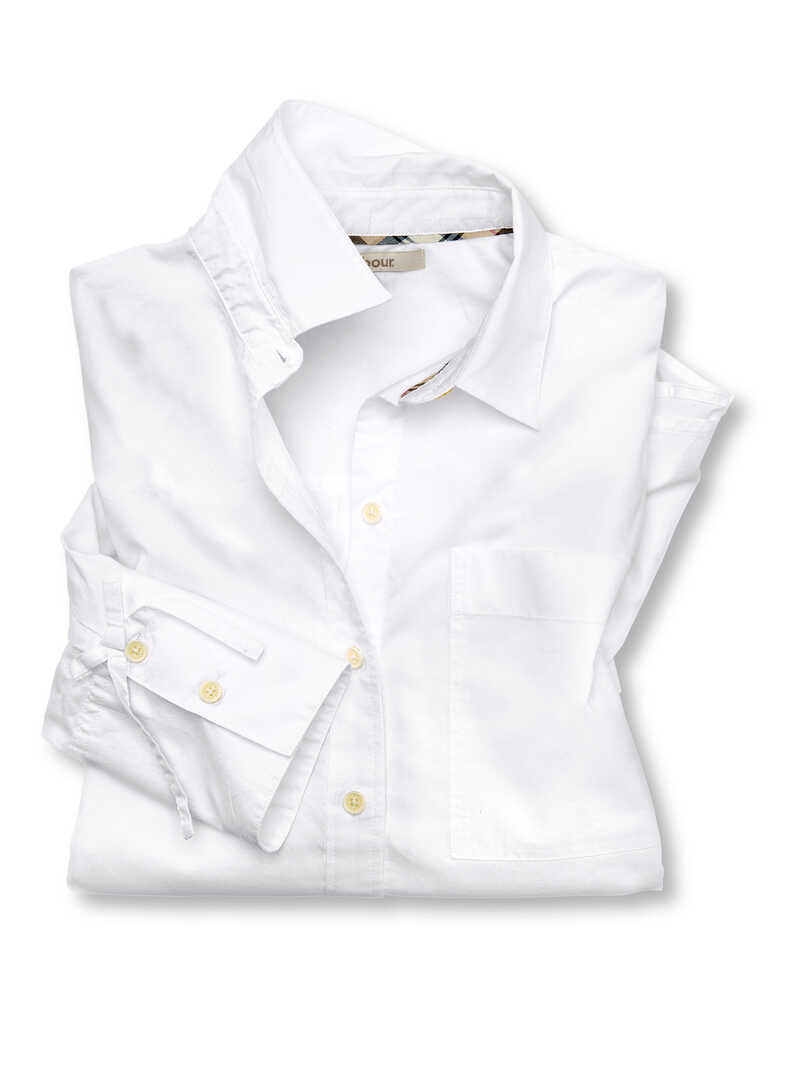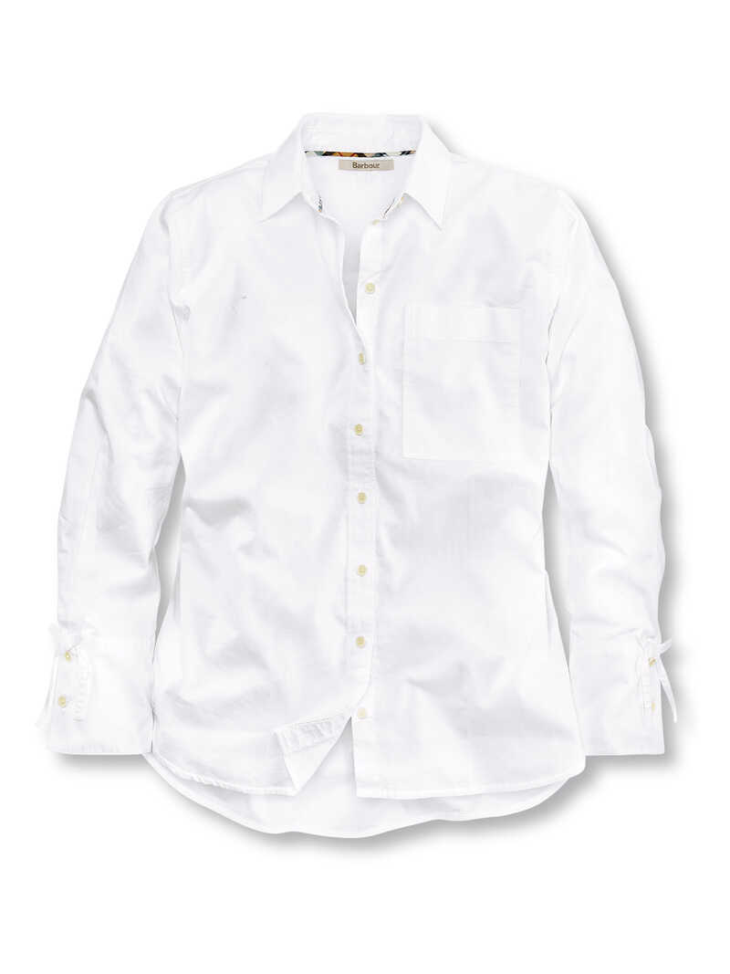 In neuem Look strahlt dieser Modeklassiker! Die weiße Longbluse von Barbour im cleanen Herrenhemd-Style bekommt durch feminine Details eine besondere Note. Beim topaktuellen Layering-Look blitzen kleine Schleifen an den breiten Manschetten gekonnt hervor, genauso wie der hinten etwas längere, geschwungene Saum mit Seitenschlitzen. Zusammen mit dem naturfarbenen Barbour-Pullunder Anastasia (Art.-Nr. 12-2445) und dem lässigen Cordrock gelingt ein richtiges Trend-Outfit. Mit Hemdkragen, durchgehender Knopfleiste und aufgesetzter Brusttasche. Lockere Oversized-Passform (Modern Fit). Länge ca. 78 cm. Farbe: weiß. Original Barbour.