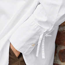 • mit Seitenschlitzen und Schleifen an Ärmelmanschetten