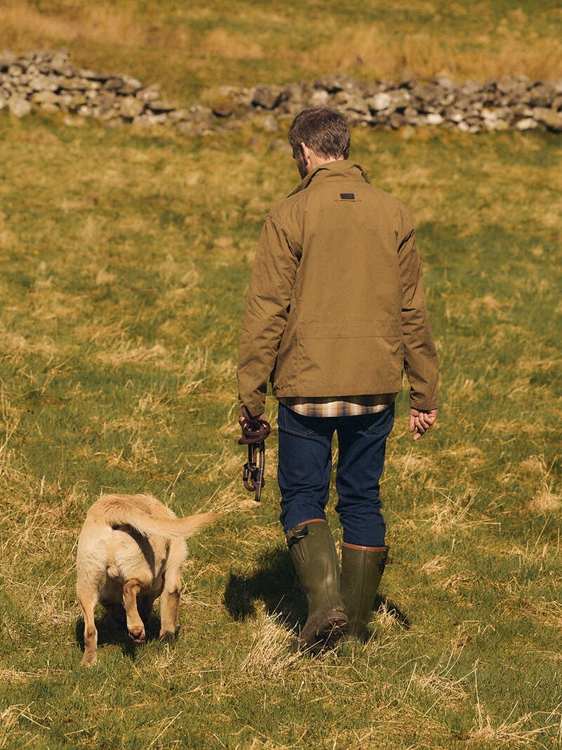 • klassische Barbour-Aussttatung mit Cordkragen, Blasebalgtaschen