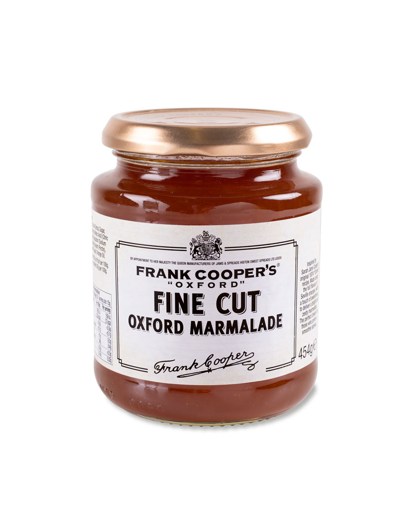 Diese typisch englische Orangenmarmelade mit fein geschnittenen Orangenschalen (Fine Cut) besticht durch den vollen Geschmack der Sevilla-Orangen und wird seit 1874 nach dem gleichen Rezept hergestellt (ursprünglich in Oxford). Einfach köstlich zum Toast oder Brötchen! (454 g).