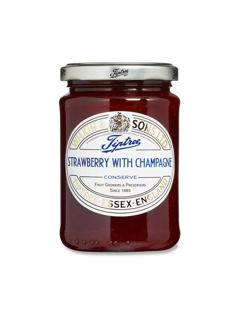 Eine fruchtige Erdbeer-Konfitüre mit Früchten von den Feldern in Tiptree und einem Hauch Champagner (4%). So lässt sich das Frühstück mit Stil genießen! Hergestellt aus 55 g Früchten je 100 g. (340 g).