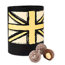 Ein zarter Kern aus weißer Schokolade, der großzügig mit Marc de Champagne aromatisiert ist, umhüllt von Milchschokolade und leicht mit Puderzucker bestäubt. Ein echter Genuss! 12 Stück (140 g) in nostalgisch anmutender Rundschachtel, die einer Hut-Box ähnelt. Original Beech's Fine Chocolates.