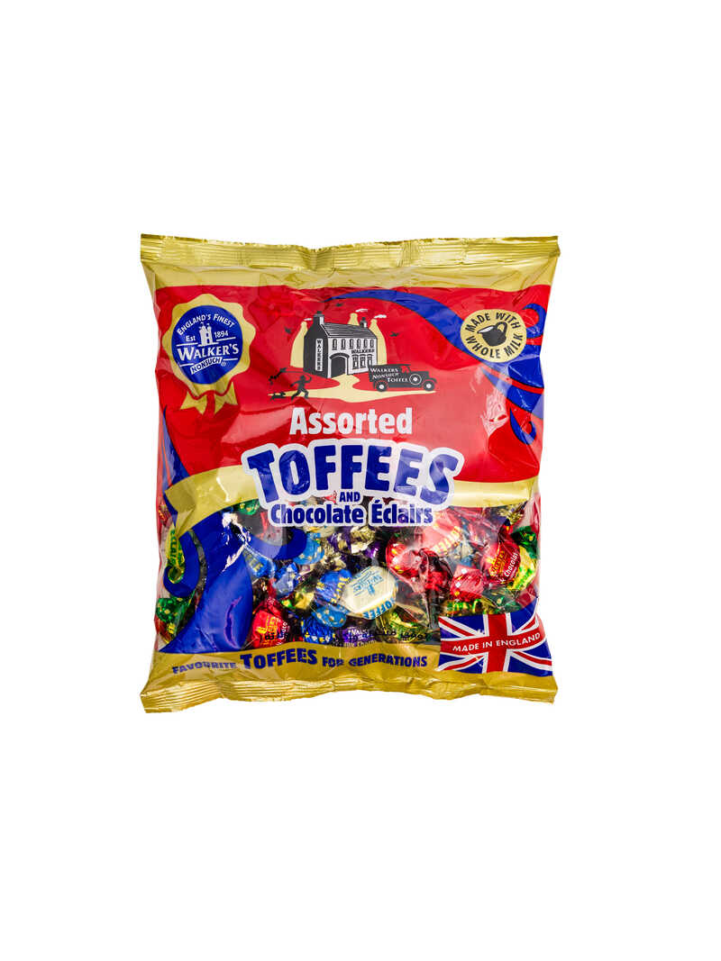 Eine ausgesprochen leckere Mischung 125 typisch englischer Toffees. Großer Beutel mit 1 kg Inhalt! Made in England by Walkers' Nonsuch Ltd., Stoke-on-Trent.