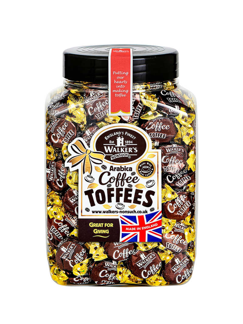 Das Toffee-Sortiment von Walker's Nonsuch wurde um eine neue Geschmacksrichtung erweitert, die uns einfach begeistert hat! Die Weichkaramellen (so die deutsche Bezeichnung für Toffees) mit einem ausgeprägten, wunderbaren Kaffee-Geschmack zergehen sehr angenehm auf der Zunge und sind einfach lecker! Walker's präsentiert diese einzeln in Folie eingepackten 134 Toffees in der beliebten Klarsicht-Dose (Inhalt 1,25 kg). Dosengröße 13 x 10 x 20 cm. Made in England by Walker's Nonsuch Ltd., Stoke-on-Trent.