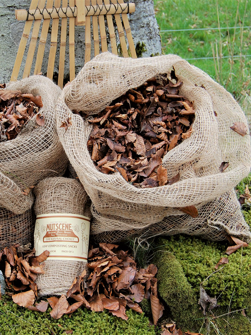 Mit den Laubsäcken von Nutscene aus Schottland wird das Laubsammeln zum Kinderspiel! Einfach die Blätter in die kompostierbaren, 100 % biologisch abbaubaren Säcke geben. Dank des groben Maschengewebes halten die Säcke das Laub kompakt zusammen. Lassen Sie diese über den Winter z. B. hinter dem Gartenhaus oder der Hecke liegen. Das Laub inkl. Sack zerfällt zu Kompost, den Sie für Ihre Gartenarbeiten nutzen können (4er-Set). Original Nutscene Twines.