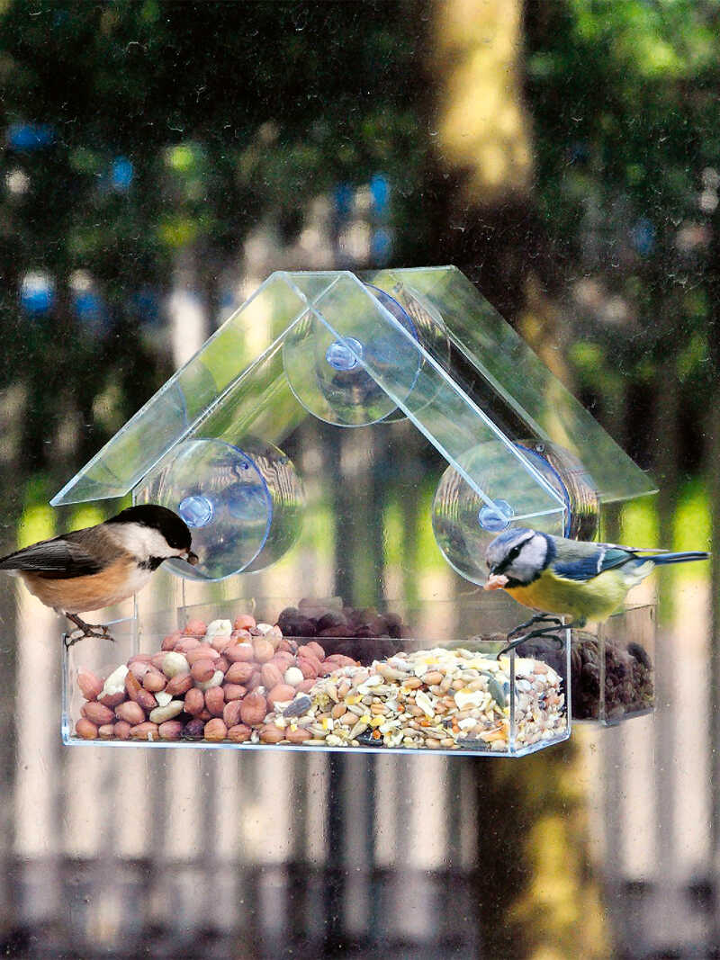 Thumbnail zu Durchsichtiges Vogelfutterhaus für die Fensterscheibe