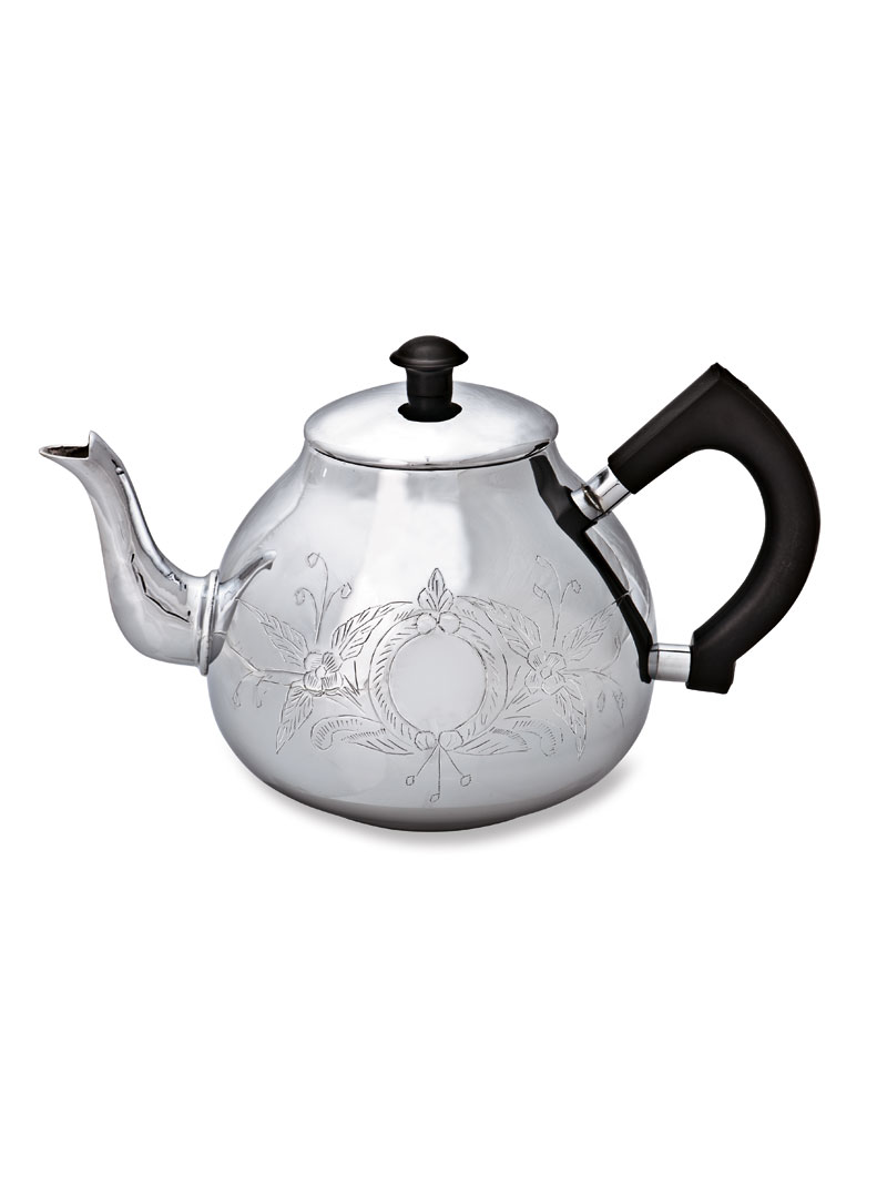 Diese Teekanne ist einfach herrlich anzuschauen und 'very British'. Sie ist komplett aus lebensmittelechtem Edelstahl gefertigt und von außen verchromt. Die klassische Form wird abgerundet mit einer feinen Gravur und den typischen schwarzen Griffen aus einem nicht wärmeleitenden Kunststoff. Der Deckel ist abnehmbar. Hervorragend geeignet zum stilvollen Servieren eines guten Tees! Für 1,3 Liter, entspricht 8 Tassen.