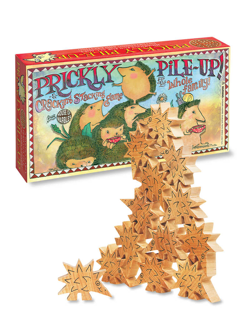 Ein kurzweiliges, unterhaltsames Spiel für die ganze Familie! Stapeln Sie mit ein wenig Geduld und Geschick die 16 aus Holz gefertigten Miniatur-Igel zu einem 'stachligen' Turm - bis der Verlierer ihn mit einem Igel zu viel umkippt. Sie sind aus ca. 0,9 cm starkem Birkenholz gearbeitet. Maße: ca. 2,5 cm bis 4,6 cm groß. Original House of Marbles, Bovey Tracey in der Grafschaft Devon.