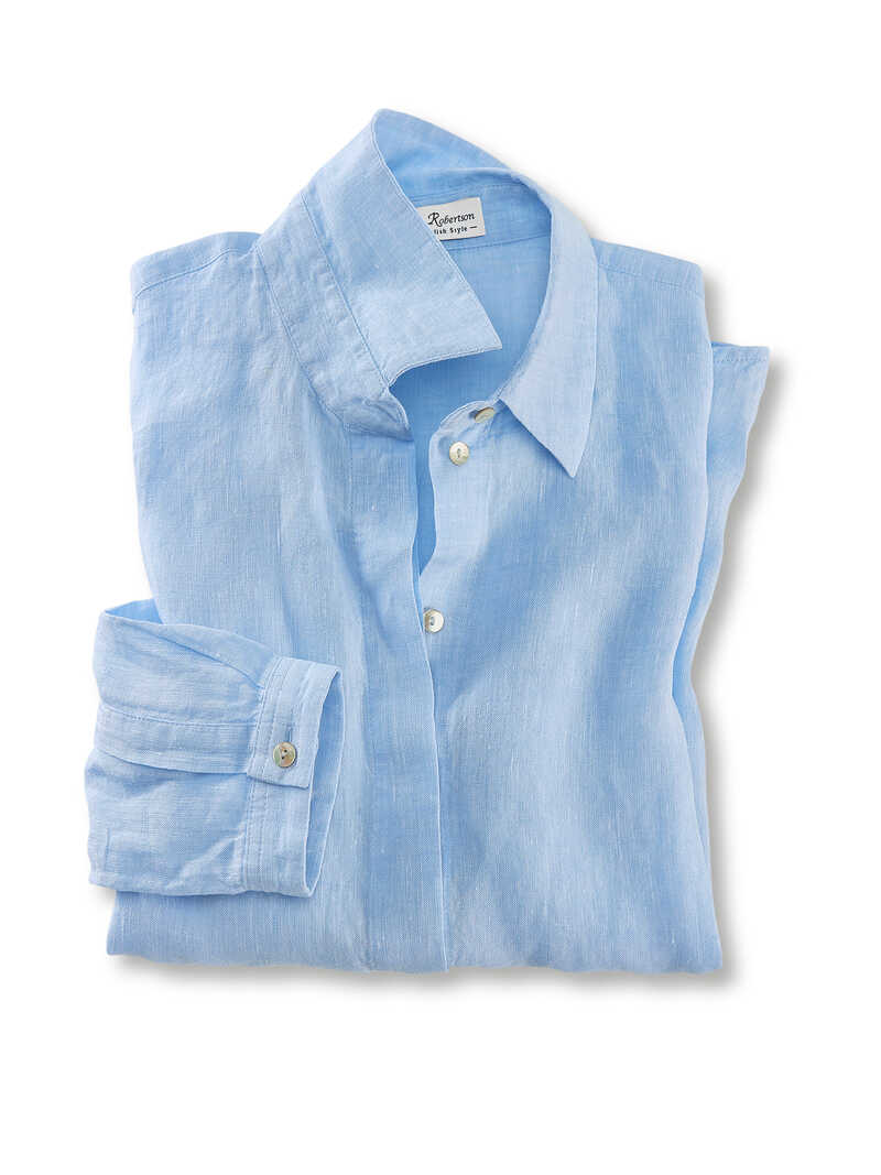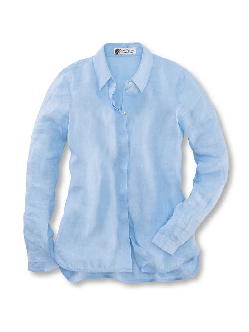 Diese lässige Hemdbluse in frischem Aquablau verkündet den Sommer und trägt sich dank luftigem Leinen in der sonnigen Saison ganz unbeschwert. Ein absolut edler Look mit Kragen, verdeckter Knopfleiste (nur der oberste Knopf ist zu sehen), langem Ärmel mit Manschette, Knöpfen in Perlmuttoptik und gerundetem, hinten etwas länger fallendem Saum mit seitlichen Schlitzen. Relaxte, gerade Passform (Regular Fit). Länge ca. 72 cm. Farbe: Aquablau. Original Charles Robertson.