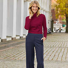 Diese eine Hose lässt Sie bei sämtlichen Gelegenheiten gut aussehen: Lässig mit Shirt zum Shopping, elegant mit Bluse zum Kaffee, sogar auf Reisen sehen Sie mit dieser knitterarmen Hose jederzeit top gepflegt aus - Travel-Chic für Clevere! Sie zaubert eine tolle Figur und ist superbequem durch ihren lockeren Schnitt mit weitem Bein. Dank des elastischen Bunds ist man schnell hineingeschlüpft und ihr hoher Elasthananteil ermöglicht ein Maximum an Bewegungsfreiheit. Mit zwei praktischen Nahttaschen und zwei Schmuckleistentaschen hinten. Ach ja, das Navy lässt sich sowieso mit allem kombinieren - ein echter Alleskönner! Lockere Passform (Regular Fit). Fußweite ca. 53 cm; Beininnenlänge ca. 78 cm. Farbe: navy. Original Charles Robertson.