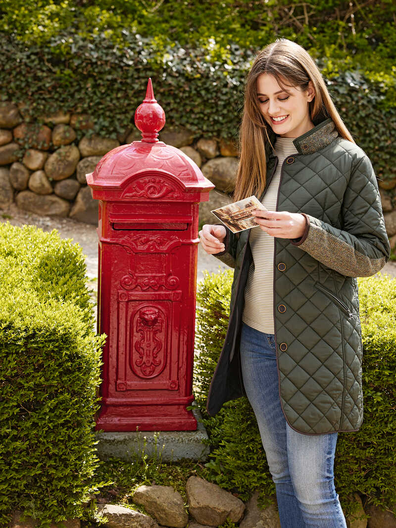 Hier ist er, der Mantel mit Wohlfühlgarantie! Sein besonderes Design aus sportivem Rautenstepp mit modischen Ärmelbesätzen machen ihn zum Blickfang und sein kuscheligwarmes Polarfleece im Innern zum winterlichen Highlight. Die modernen Ärmelbesätze sind aus echtem Harris Tweed gefertigt und ergeben mit ihrem blauen Fischgratmuster eine unschlagbare Kombi. Genau dieser Tweed ist für seine strapazierfähigen Eigenschaften weltbekannt, deshalb sind diese Patches auch nahezu unverwüstlich. Der Stehkragen mit Riegel in Velourslederoptik und der Tweedbesatz außen runden den Country Look ab. Mit drei schrägen Metallreißverschlusstaschen, Knöpfen in Hornoptik und einer Innentasche mit Reißverschluss. Die Wiener Nähte dieses halblangen Steppmantels sorgen für eine taillierte, feminine Silhouette. Regular Fit. Länge ca. 88 cm. Farbe: oliv. Original Wellington of Bilmore.