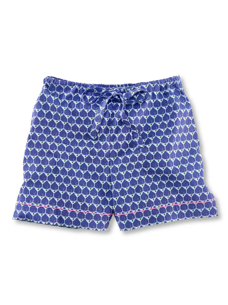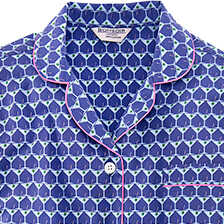 Für gute Laune am Morgen und am Abend sorgt dieser Pyjama mit seinem stylishen Design in Nightblue mit Oliv und Bleu! Erst bei genauerem Hinsehen erkennt man in dem Muster gestapelte Martini-Gläser mit der berühmten Olive darin - ob geschüttelt oder gerührt, bleibt unser Geheimnis! Dieses Ensemble mit seinem außergewöhnlichen Allover-Print ist aus feinster, supersofter Baumwolle und stammt von Bonsoir of London, einem traditionsreichen Unternehmen, das für luxuriöse Nachtwäsche in bester Qualität bekannt ist. Rosafarbene Paspelierungen bilden einen modischen Kontrast zum Dessin. Das Oberteil hat einen abgerundeten Kragen, eine aufgesetzte Brusttasche und Knöpfe in Perlmuttoptik. Dank Tunnelzug mit Bindeband lässt sich die kurze Hose auf Taille bringen. Bequeme Passform (Comfort Fit). Farbe: Nightblue. Original Bonsoir of London.
