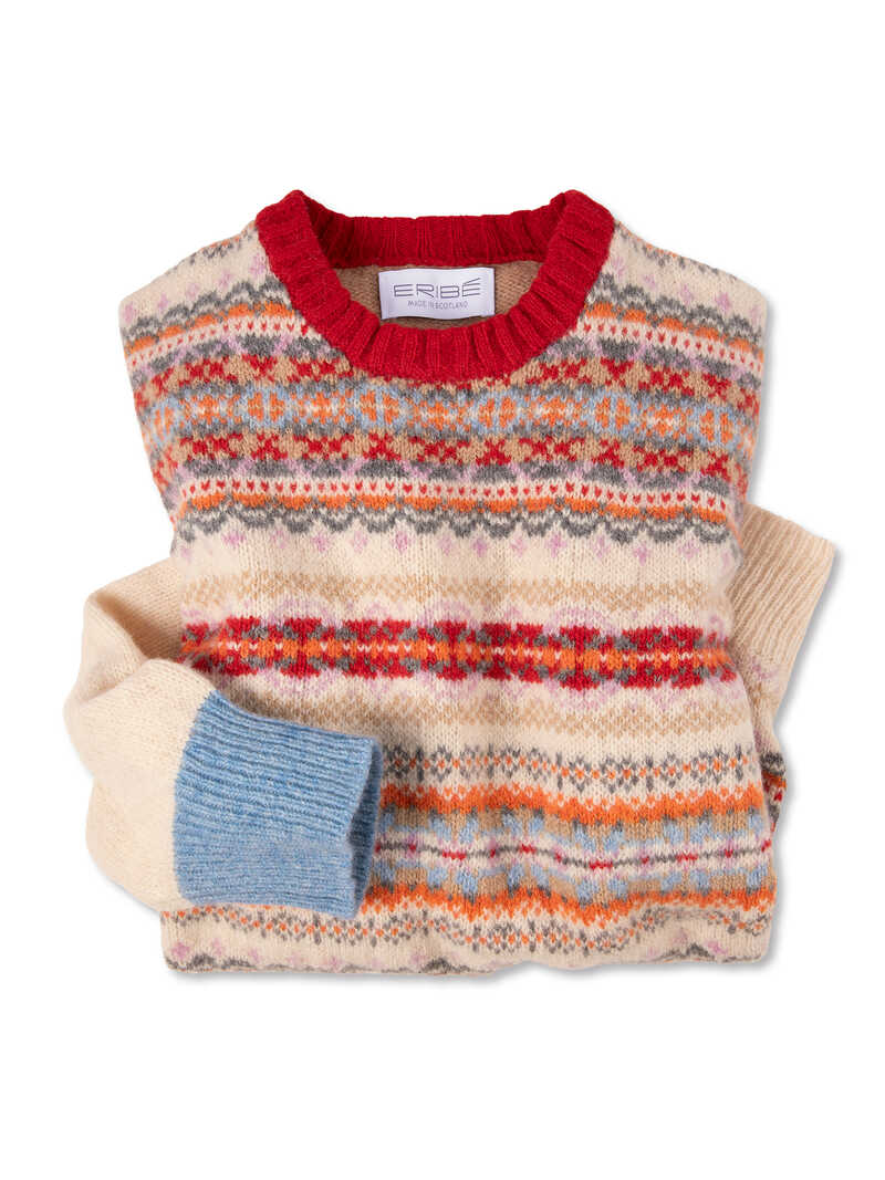 Lust auf etwas Besonderes? Diesen ausgefallenen Fair Isle Pullover haben wir exklusiv zusammen mit dem innovativen, schottischen Stricklabel Eribé designt! Herausgekommen ist ein stylishes Colour-Blocking mit einem traditionellen Fair Isle-Muster im Vorderteil, unifarbenen Ärmeln mit hellblauen Kontrastbündchen und einem ebenfalls unifarbenen Rückteil in Karamell. Ein junger, frischer Look, der ganz im Sinne des preisgekrönten Unternehmens steht. Dieses legt großen Wert auf natürliche Garne und handwerkliche Verarbeitung. Die weiche, wärmende Shetland Wool macht diesen Pulli mit seinem außergewöhnlichen Style zum echten Winter-Highlight! Gerade Passform (Regular Fit) mit Rundhals. Länge ca. 60 cm. Farbe: sand-karamell. Original ERIBÉ.