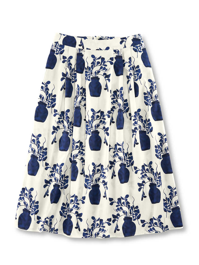 Ein sensationelles Muster macht diesen Rock zum absoluten Eyecatcher! Große Vasen mit effektvollen Zweigen und Blättern bilden einen spannenden Kontrast zum Ecru des leichten Baumwoll-Popelines. Sehr schmeichelhaft ist der weit ausgestellte Schnitt des Rocks, der durch die tief gelegten Falten vorne und hinten noch betont wird. Der breite Bund sitzt wie von selbst auf der natürlichen Taille. Mit Seitennahttaschen und rückwärtigem Zipper. Zu diesem großartigen Rock gibt es noch die passende Bluse - zusammen sind die beiden ein unschlagbares Duo. Aber auch schlichte Oberteile sehen auf diesem Rock grandios aus! Weit ausgestellte Passform (Regular Fit). Länge ca. 76 cm. Farbe: Ecru. Original Herringbone.