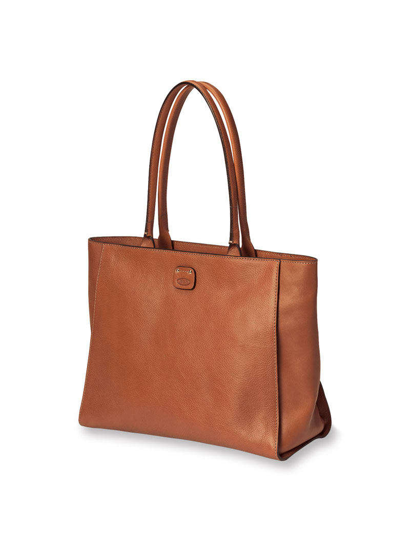 Steht für schlichtes, modernes Design: diese Tasche aus der Premium- Kollektion von Bric's. Gearbeitet aus hochwertigem, pflanzlich gegerbtem Glattleder, das im Laufe der Zeit immer schöner und charaktervoller wird. Mit geräumigem Hauptfach (passend für A4-Formate), Reißverschluss-Innenfach, Handytasche, Einsteckfach und zwei stabilen Henkeln (Länge ca. 54 cm). Maße 34 x 29 x 10 cm. Farbe: cognac. Original Bric's.