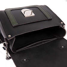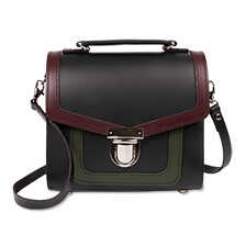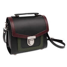 Die handgefertigten Taschen des britischen Trendlabels Zatchels stechen einfach aus der Masse hervor! Und nicht nur Promis erliegen dem Charme dieser coolen Begleiter. Die Harmony Bag ist aus schwarzem, für Zatchels typischen, stabilen Glattleder gefertigt und setzt durch seine oliv- und bordeauxfarbene Umrandung gekonnt Akzente. Ein markanter, silberfarbener Steckverschluss, ein Tragegriff und ein verstellbarer, abnehmbarer Tragegurt (max. 132 cm), runden das Design ab. Mit kleiner Eingrifftasche vorne und innen sowie silbernen Nieten als Taschenbodenschutz. Lieferung mit Zertifikat. Maße 19 x 19 x 10 cm. Farbe: schwarz. Original Zatchels. Handmade in UK.