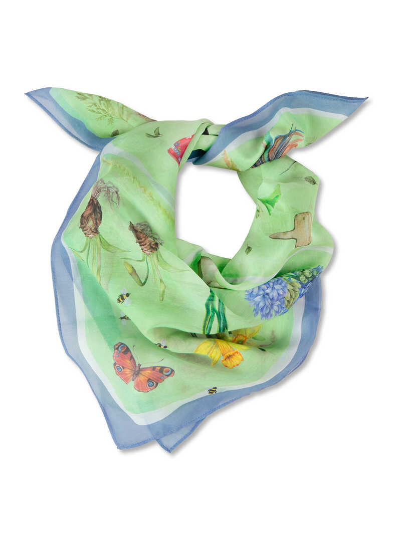Nicht nur Gartenliebhaber werden an diesem ausgefallenen Tuch ihre Freude haben! Das frische Apfelgrün und die schön luftig-leichte Baumwoll-Seidenmischung bringen die Gartenmotive wunderbar zum Strahlen. Dieses etwas größere Nickituch ist eine tolle Wahl, um Ihrem Outfit einen frischen, naturinspirierten Look zu verleihen. Größe 65 x 65 cm. Farbe: Apfelgrün. Original Helen Leigh.