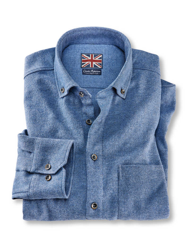 Einmal angezogen, wollen Sie aus diesem kuschelig weichen Flanell-Hemd nicht mehr so schnell raus! Wetten, dass es ihr Lieblingshemd in der kommenden Saison wird? Zudem kann dieses Hemd im British-Style aus hochwertigem Vollzwirn-Flanell auch den Pullover ersetzen. Aus Fischgrat-Gewebe, mit modernem 'Button Down'-Kragen, Brusttasche und verstellbaren Manschetten. Normale, schlanke Passform (Modern Fit) Länge ca. 80 cm. Farbe: hellblau. Original Charles Robertson.