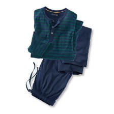 Unsere Lieferanten für exklusive Herrennachtwäsche sorgen mit traditionellen Mustern und hochwertiger Verarbeitung bester Naturfasern für einen guten Schlaf. Die Pyjamas und Nachthemden für Herren im traditionellen Streifen- und Karodessin lassen sich dank atmungsaktiver Baumwolle und der bequemen Passform in jeder Jahreszeit angenehm tragen. Exklusive Loungewear von Charles Robertson: ideal für ein relaxtes Wochenende.