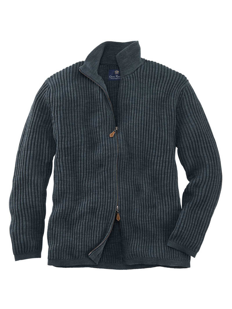 Herrlich unkompliziert ist dieser Zip-Cardigan! Er passt einfach überall drüber und kann das ganze Jahr lang getragen werden. Auch in der Übergangszeit ersetzt er problemlos eine leichte Jacke. Ein optisches Highlight ist die markante Rippenstruktur, die der Strickjacke eine gewisse Sportlichkeit gibt. Praktisch und schön zugleich ist der Zweiwege-Reißverschluss aus Metall mit kontrastfarbigen Anhängern in Lederoptik. Kurzum ein superbequemer Allrounder, den man nicht so schnell auszieht! Mit Stehkragen und schmalen Ärmel- und Saumbündchen. Normale Passform (Regular Fit). Länge ca. 71 cm. Farbe: graphit. Original Charles Robertson.