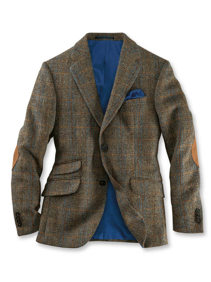Premium-Sakko aus Harris Tweed in Oliv-Braun