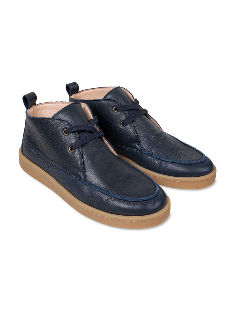 Ein echter Hybrid in Sachen Styling ist dieser halbhohe Sneaker! Er deckt die komplette Range vom legeren Freizeit- bis zum schicken Businesslook ab. Das elastische, superweiche Rindsleder schmiegt sich förmlich an Ihren Fuß. Das Label Robertson Natural legt größten Wert auf eine hochwertige und ökologische Herstellung seiner Schuhe. Alle Leder sind pflanzlich gegerbt und schadstofffrei. Auch innen ist der Schuh komplett aus weichem Leder. Die markante Gummisohle ist besonders flexibel. Der höhere Schaft dieses topmodischen Sneakers passt übrigens auch sehr gut zu schmaleren oder gekrempelten Hosenmodellen! Mit Anziehschlaufe. Farbe: Navy. Original Robertson Natural.