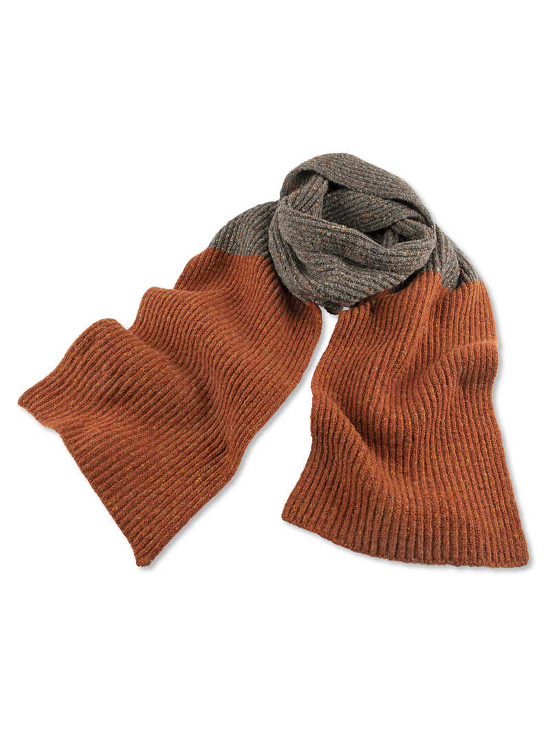 Winterlicher Strick aus Donegal-Garnen verleihen diesem Wollschal seine kernige Tweedoptik! Unregelmäßige Farbakzente unterstreichen das natürliche Rostrot an den beiden Schalenden (je ca. 40 cm) und das Braun in der Mitte. Gestrickt in fester, klassisch schmaler Rippe, so dass die Wärme gut gespeichert werden kann. Der Schal stammt von der schottischen Strickmanufaktur Robert Mackie, gegründet 1845. Dieses gute Stück hat Charakter und harmoniert zu vielen Jacken und Mänteln! Größe ca. 180 x 25 cm. Farbe: Braun-Rostrot. Original Robert Mackie. Made in Scotland.