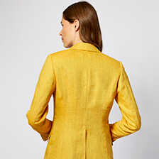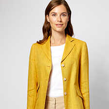 Sommerliches Safrangelb und luftiges Leinen sind das Geheimrezept dieses leichten Blazers! Die frische Farbe schmeichelt wunderbar dem Teint und das irische Leinen fühlt sich angenehm kühl an und wirkt durch seine Edelknitter modisch lässig. Meliert und fein strukturiert - dieses Gewebe kann seine Herkunft kaum verleugnen. Es stammt vom irischen Edelweber »Emblem Weavers«, Garant für exklusive Stoffe in bester Handwerkskunst seit über 50 Jahren. Für eine schlanke, feminine Silhouette sorgt der taillierte, etwas längere Schnitt im Reiterstil. Mit zwei Doppelpaspel-Pattentaschen, einer Bilett-Tasche sowie einer Innentasche. Figurnahe Passform (Modern Fit). Länge ca. 68 cm. Farbe: Safran Melange. Original Kinbury.