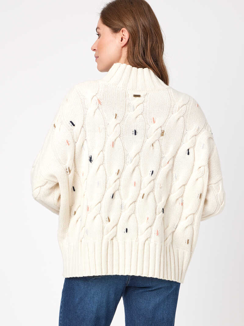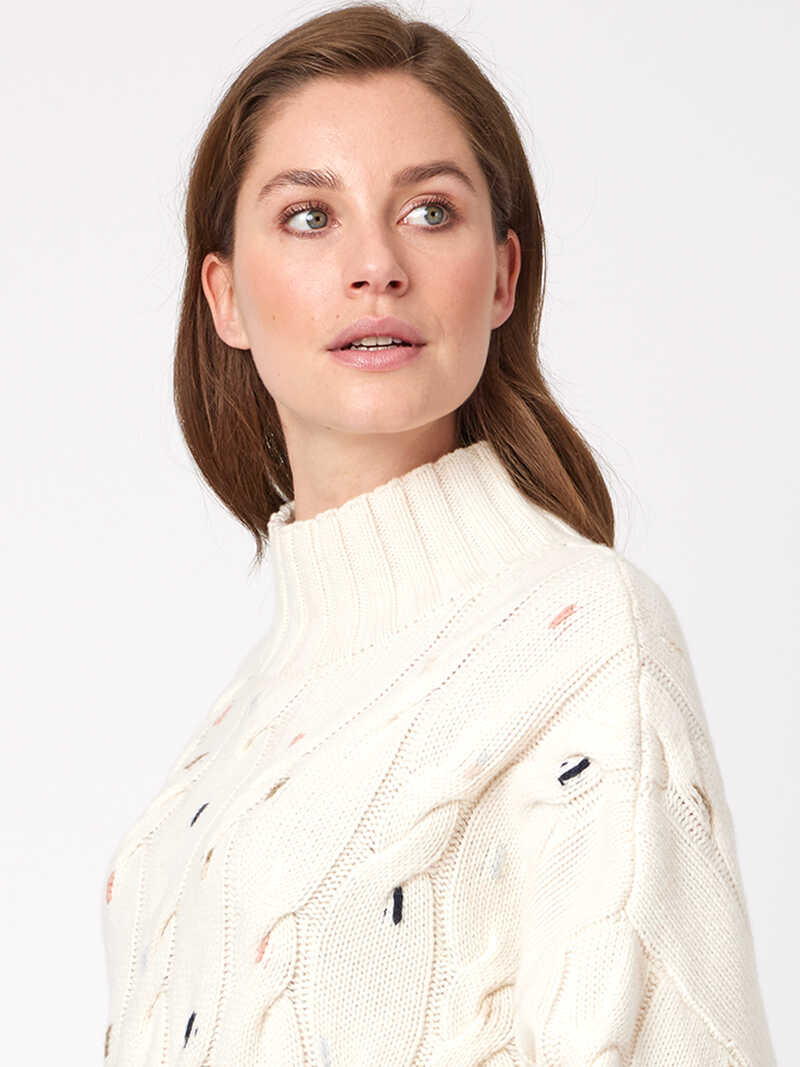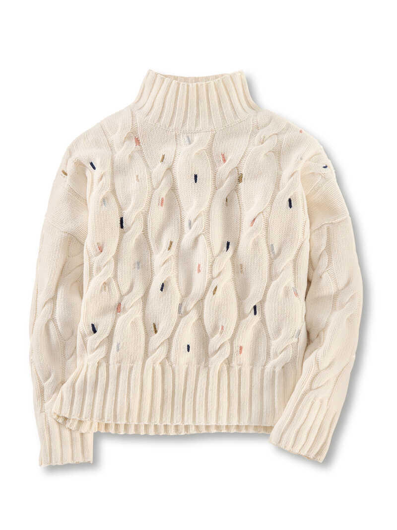 Ein Oversized-Schnitt, grob gestricktes Zopfmuster und zartes Wollweiß sind die Hauptzutaten dieses lässigen Barbour-Pullovers! Kleine Farbtupfer in Lachsrosa, Oliv und Blau ergänzen das Zopfmuster aufs Schönste. Die Mischung ist besonders smart: Durch den hohen Wollanteil herrlich wärmend, das Polyamid macht den Pulli unempfindlich und formbeständig. Mit überschnittenen Schultern, hohem Stehkragen, breiten Bündchen an Ärmeln und Saum. Modisch, weite Passform (Modern Fit) - fällt groß aus. Länge ca. 64 cm. Farbe: Wollweiß. Original Barbour.